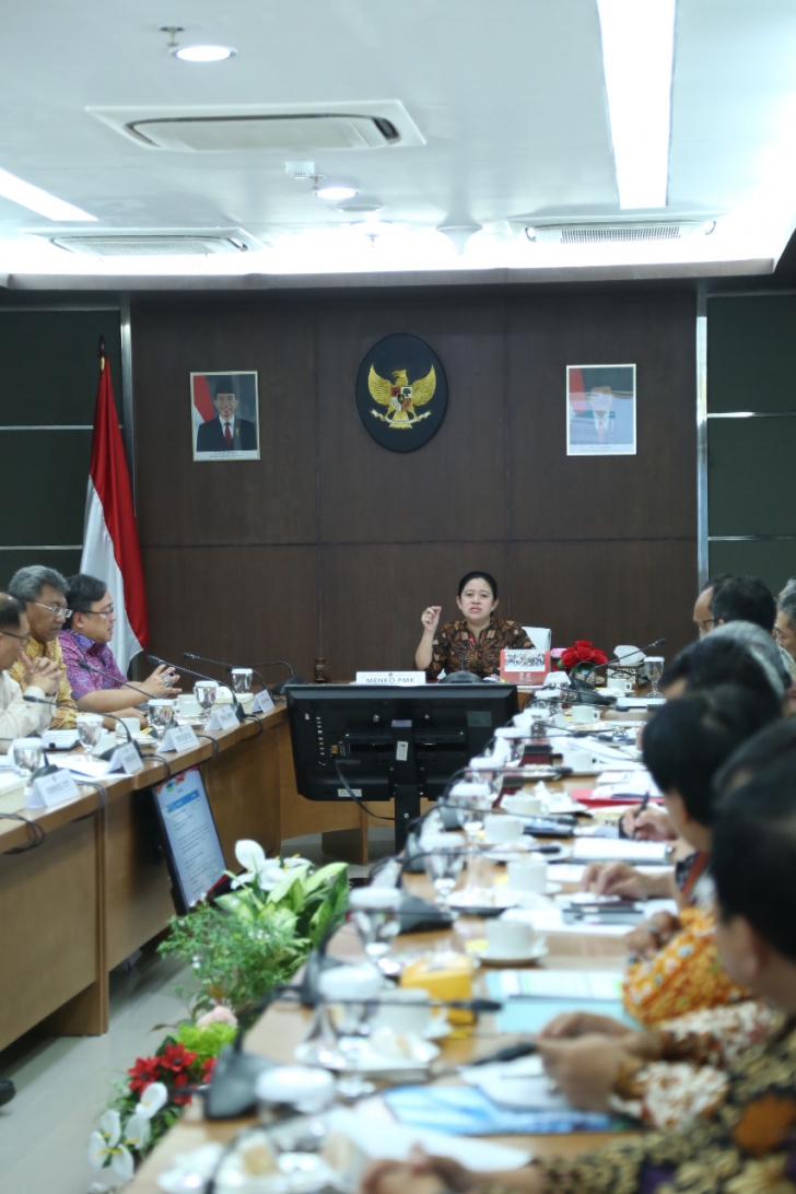 Jakarta (23/03)--- Menko PMK, Puan Maharani, siang tadi memimpin Rapat Tingkat Menteri untuk membahas dan menyimak langsung perkembangan terkini pelaksanaan program Padat Karya Tunai Desa (PKTD) setelah mulai dilaksanakan pada Tahap I di Januari 2018 lalu. Memasuki Tahap II pelaksaanaan, PKTD diketahui masih terkendala sejumlah masalah antara lain keterlambatan penetapan Perda dan Perkada; Pemerintah Desa yang belum menetapkan APBDes sebagai syarat penyaluran Tahap I dari RKUD ke RKD; beberapa pemerintah desa kesulitan untuk memenuhi dana HOK (Hak Orang Kerja) sebesar 30 persen dengan alasan: kesulitan tenaga kerja, tidak adanya penduduk miskin dan pengangguran, serta tidak adanya jenis kegiatan yang dapat dikelola secara padat karya tunai; pemerintah desa membutuhkan waktu untuk merevisi APBDes-nya agar mencapai 30 persen HOK; desa dan kecamatan masih mempertanyakan dasar hukum pemenuhan 30 persen HOK sehingga sering terjadi keraguan; dan kegiatan Padat Karya dari kementerian yang perlu segera dilaksanakan. Hadir dalam RTM ini Menteri PPN/Bappenas, Bambang Brodjonegoro; Wamenkeu, Mardiasmo; Kepala BPKP; Dirjen Bina Pemdes Kemendagri; Dirjen PPMD Kemen PDTT; Dirjen SDA dan Cipta Karya Kemen PUPR; Deputi PMK Seskab; Deputi 2 dan 3 Kantor Staf Presiden; Sekretariat TNP2K; dan Jajaran Deputi serta Staf Ahli Menko PMK.
