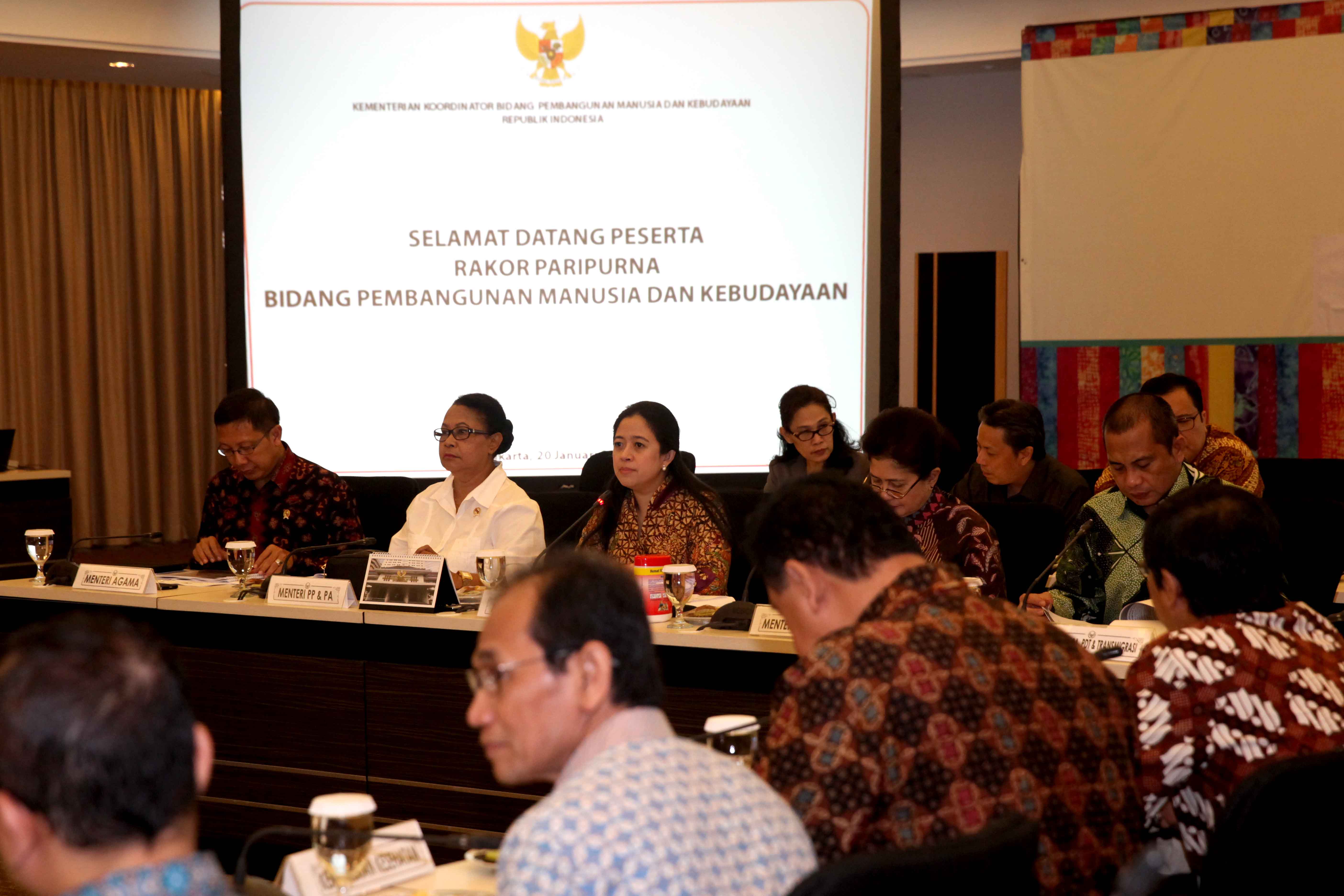 Jakarta, 20 Januari - Menteri Koordinator Bidang Pembangunan Manusia dan Kebudayaan Puan Maharani (tiga kiri) memimpin Rapat Koordinasi (Rakor) Paripurna Bidang Pembangunan Manusia dan Kebudayaan pada Selasa (20/01/2015) pagi di Kemenko PMK, Jl. Medan Merdeka Barat No.3, Jakarta.
