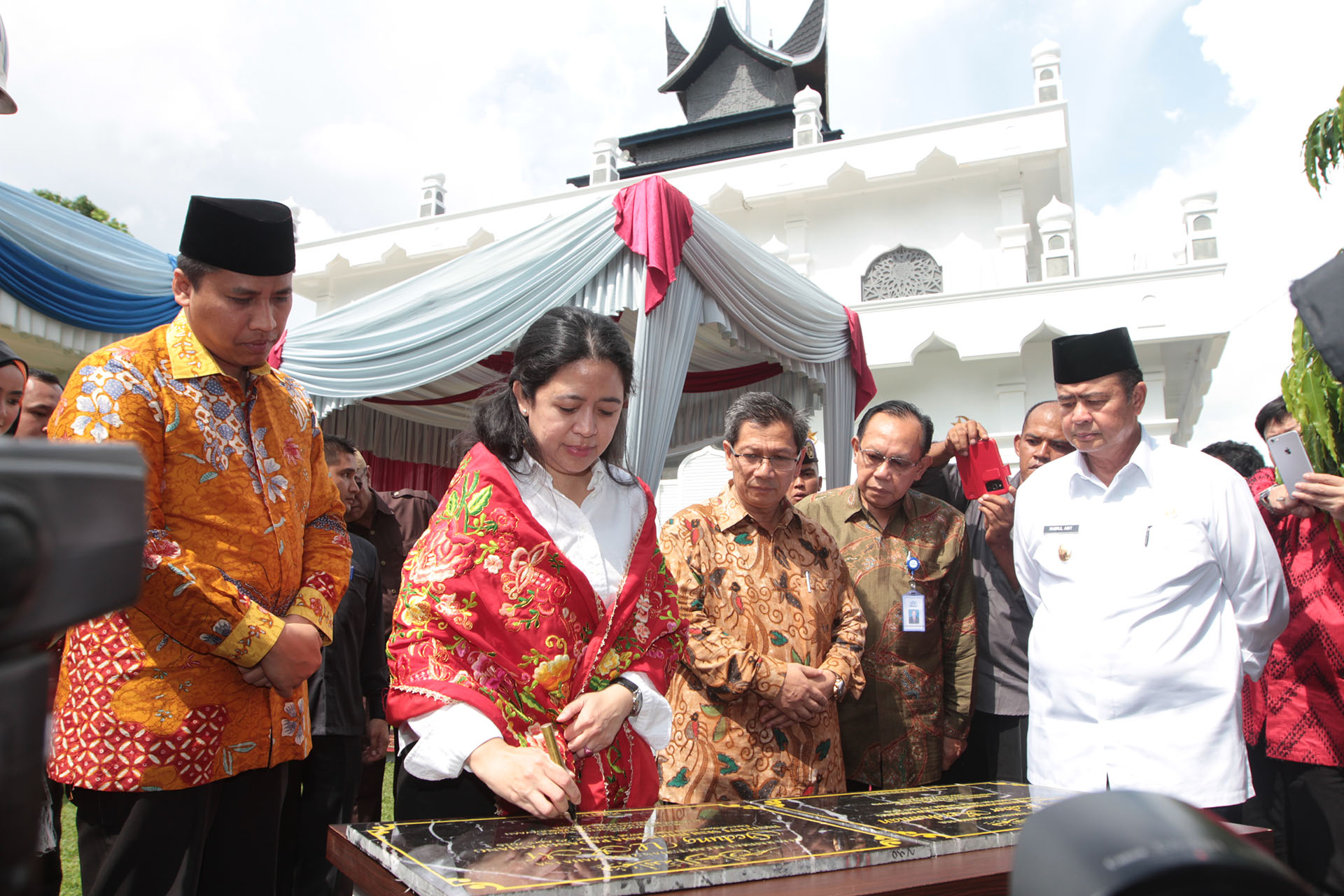 Padang Panjang (29/04) - Dalam rangkaian kunjungannya ke Provinsi Sumatera Barat (Sumbar), hari ini Menteri Koordinator Bidang Pembangunan Manusia dan Kebudayaan (Menko PMK) Puan Maharani meresmikan Gedung Labor Kerohanian dan Gedung UKM ISI Padang Panjang.