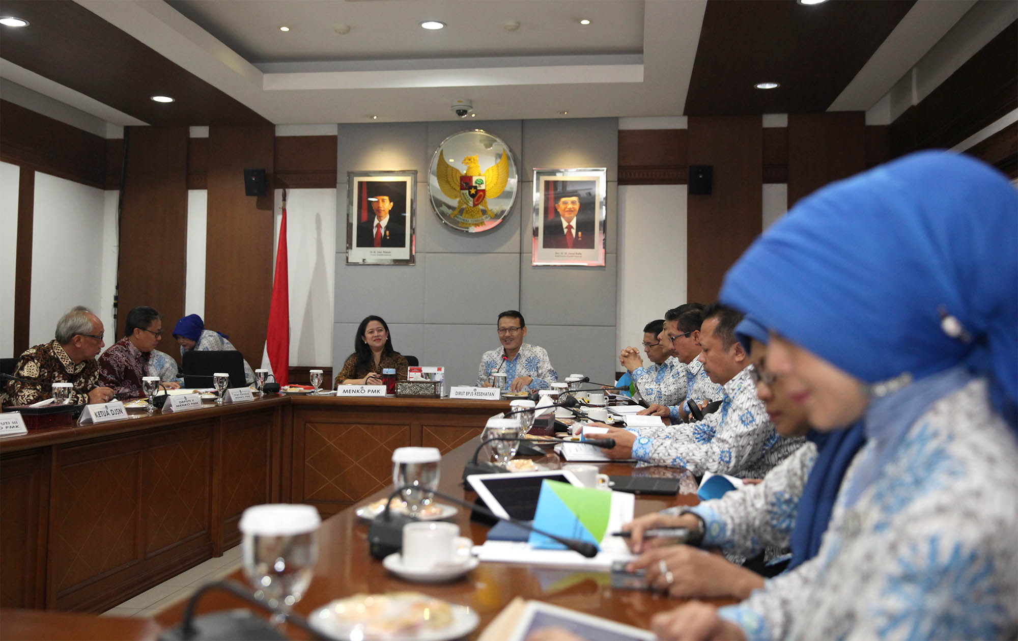 Jakarta, (15/3) - Menteri Koordinator Bidang Pembangunan Manusia dan Kebudayaan Puan Maharani (tiga kiri) menerima audensi Direktur Utama Badan Penyelenggara Jaminan Sosial (BPJS) Kesehatan Fahmi Idris (empat kiri) beserta Dewan Pengawas BPJS Kesehatan. foto:dnovico/humas