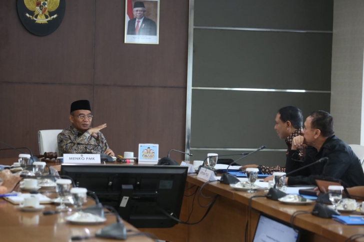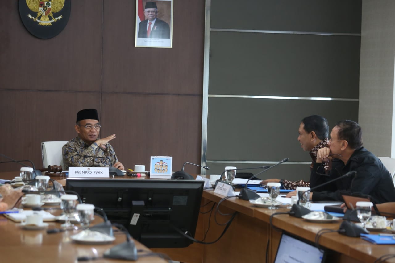 Jakarta (17/1) -- Menteri Koordinator bidang Pembangunan Manusia dan Kebudayaan (Menko PMK) Muhadjir Effendy menerima kunjungan dari Menteri Pemuda dan Olahraga (Menpora) Zainuddin Amali, serta Ketua Umum Persatuan Sepakbola Seluruh Indonesia (PSSI) Mochamad Iriawan pada hari Jumat (17/1) di Ruang Rapat Lantai 8, Kantor Kemenko PMK, Jakarta.