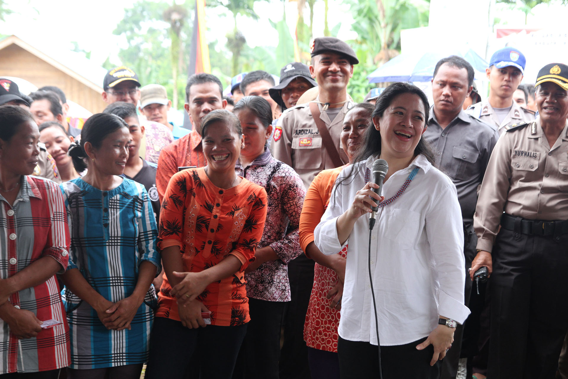 Pagai Selatan (28/04) - “Kehadiran saya disini dengan Mensos, Menkes, kepala BNPB dan para pejabat lainnya bukan sekedar bertemu. Saya sangat berharap setelah kehadiran kami ada implementasi dari harapan-harapan rakyat yang juga harapan kami agar bisa menyelesaikan satu-persatu dan perlahan-lahan masalaha yang ada dan yang terpenting adalah dengan cara gotong royong.” Demikian disampaikan Menteri Koordinator Bidang Pembangunan Manusia dan Kebudayaan (Menko PMK) Puan Maharani dalam kunjungan kerja (kunker) di Desa Bulasat, Kecamatan Pagai Selatan, Kabupaten Kepulauan Mentawai, Sumatera Barat.