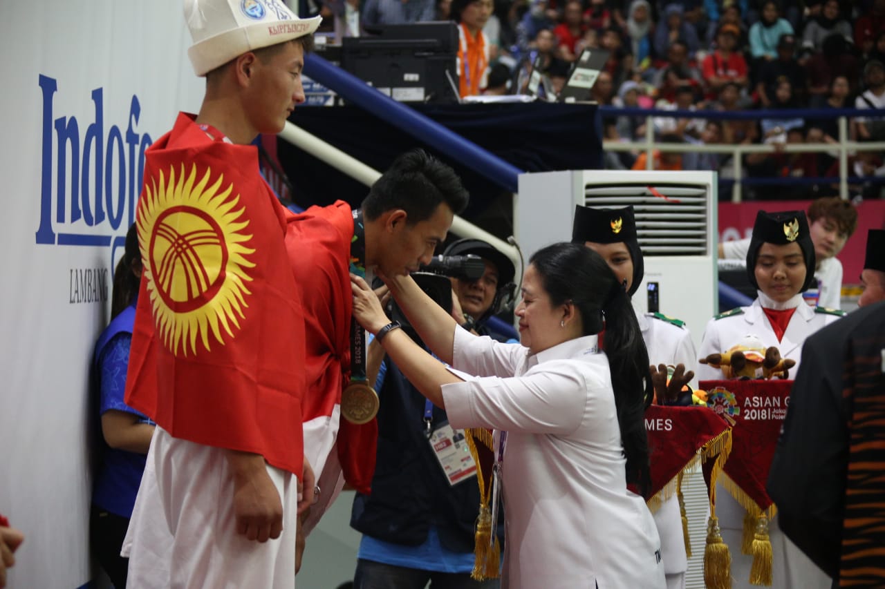 Adapun Wakil Presiden Jusuf Kalla memberikan medali emas kepada pesilat Yudani Kusumah Hanifan. Sedangkan Presiden Joko Widodo mendapatkan kesempatan terakhir memberikan medali emas kepada pesilat Wewey Wita. Presiden Joko Widodo pun berkesempatan memberikan medali emas kepada Wewey Wita. Didampingi Ketua IPSI Prabowo Subianto dan CdM Asian Games 2018 Komjen Pol Syafruddin, Presiden Joko Widodo kemudian menyalami satu persatu atlet Pencak Silat Indonesia. Seremoni ini sekaligus menandakan selesainya cabang olahraga Pencak Silat pada Asian Games 2018.