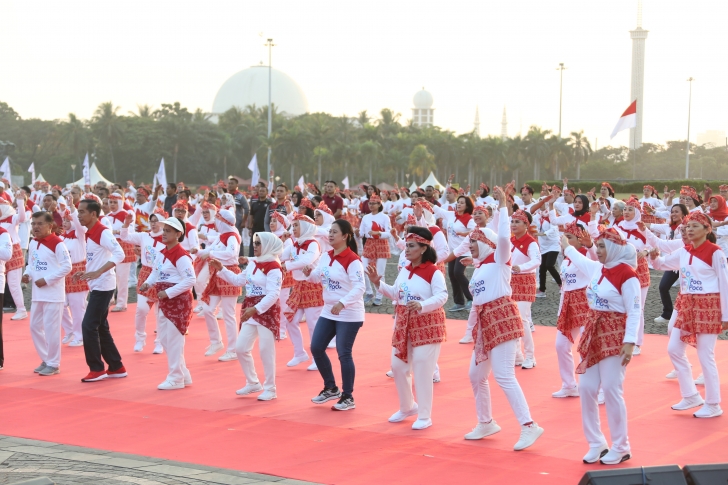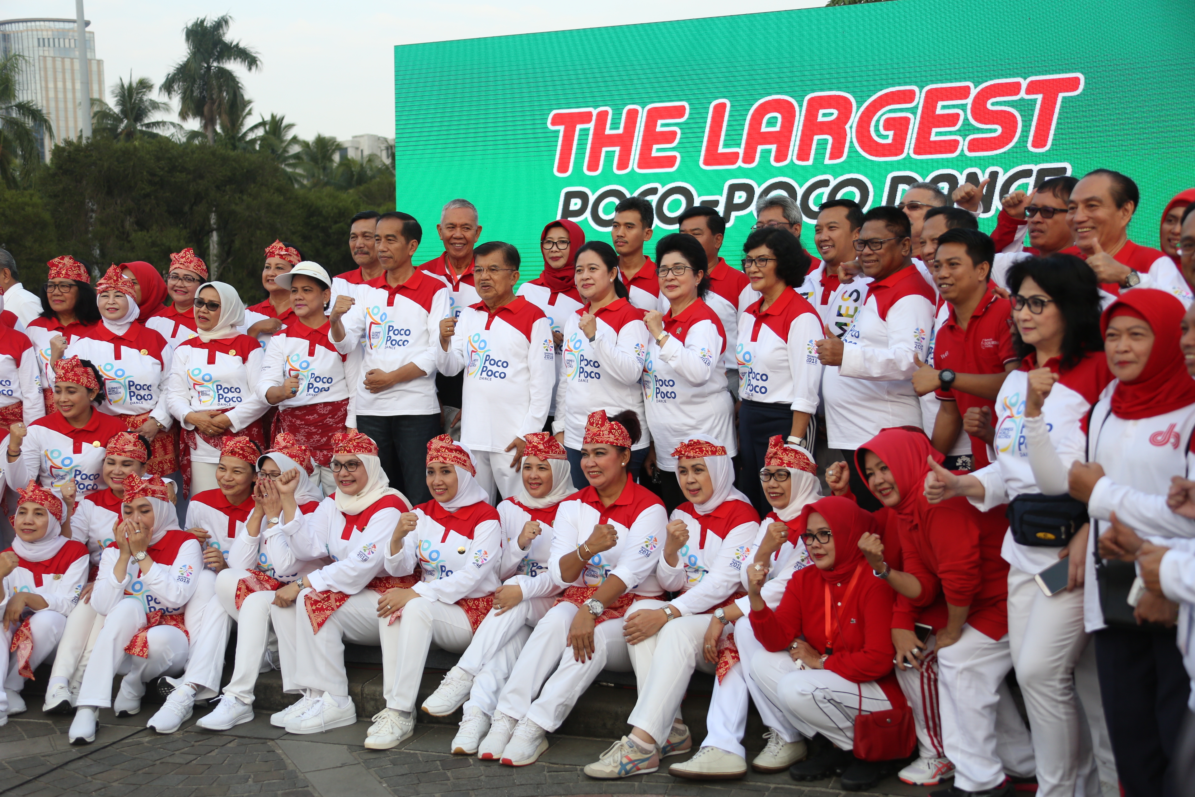 Jakarta (05/08) – Sebagai penanda launching ASEAN Car Free Day dalam rangka HUT ASEAN ke 51 sekaligus menyambut pelaksanaan Asian Games 2018, pemerintah menggelar pemecahan rekor dunia tari poco-poco. Dalam kesempatan itu, Menko PMK Puan Maharani pun mendampingi Presiden Joko Widodo.