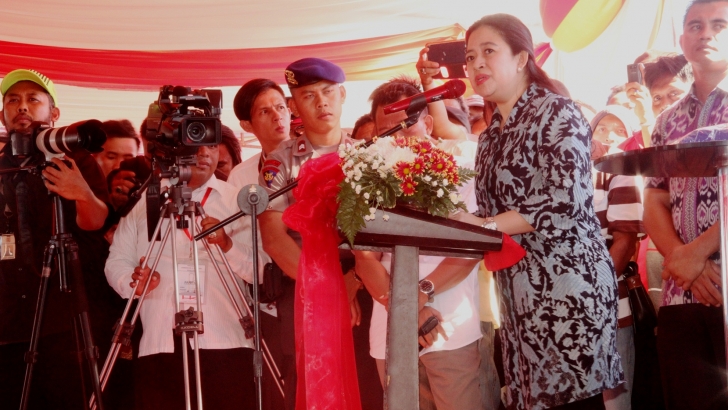 Manado,28 Mei 2015- Menteri Koordinator Bidang Pembangunan Manusia dan Kebudayaan (Menko PMK) Puan Maharani memberikan sambutan pada acara peresmian Jembatan Ir. Soekarno, di Kota Manado Sulawesi Utara, Kamis (28/05).(Yn/humas)