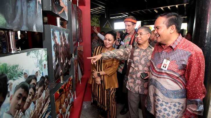 Jakarta, 25 September - Deputi Menko Kesra Bidang Koordinasi Kebudayaan, Pariwisata, Pemuda dan Olahraga Dr. Haswan Yunaz (kanan), Wamendikbud Wiendu Nuryanti (kedua kiri), Gubernur Aceh Darussalam Zaini Abdullah (ketiga kiri) bersama sama menabuh rebana sebagai tanda Pembukaan Pameran Perjalanan Warisan Budaya Dunia yang digelar Direktorat Internalisasi Nilai dan Diplomasi Budaya, Dirjen Kebudayaan, Kemdikbud. (Acehprov.go.id./Gs).