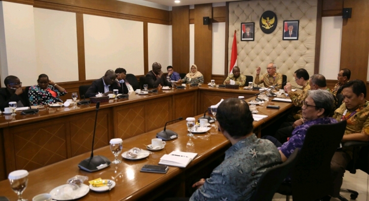 Jakarta (26/07) – Bertempat di ruang Rapat Lt Dasar Kemenko PMK, Deputi Bidang Koordinasi Penanggulangan Kemiskinan dan Perlindungan Sosial Kemenko PMK, TB Achmad Choesni menerima audiensi anggota Parlemen Kenya.