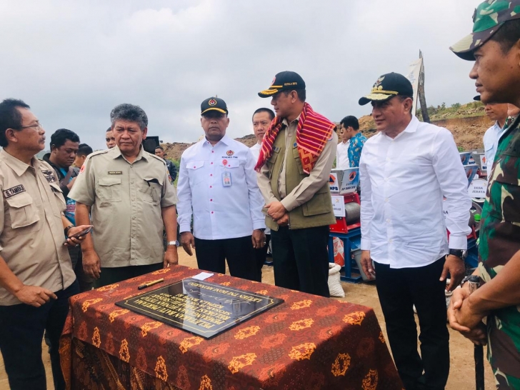 Kabupaten Karo (18/10) -- Deputi Bidang Koordinasi Kerawanan Sosial dan Dampak Bencana Kementerian Koordinator Bidang Pembangunan Manusia dan Kebudayaan (Kemenko PMK) Dody Usodo HGS melakukan peletakan batu pertama relokasi pembangunan hunian tetap (huntap) tahap III untuk masyarakat terdampak erupsi Gunung Sinabung tahun 2015 di Desa Siosar, Kecamatan Merek, Kabupaten Karo, Sumatera Utara. Pada kesempatan tersebut, Dody didampingi oleh Kepala BNPB Doni Monardo, Gubernur Sumut Eddy Rahmayadi, Ketua DPRD Provinsi Sumut, Bupati Tanah Karo, Danrem 023/KS, dan segenap Forkompimda Sumut.