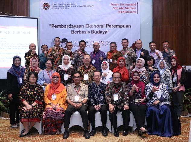 Yogyakarta (19/7) – Staf Ahli Menteri Kemenko PMK kembali  menyelenggarakan acara Forum Komunikasi  Staf Ahli Menteri (FORKOMSAM) dengan mengangkat tema Pemberdayaan Ekonomi Perempuan Berbasis Budaya di Hotel Tentrem, Yogyakarta.