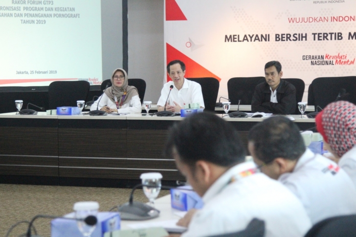 Saat ini Pemerintah tengah berupaya menyusun modul terkait pornografi, membuat media komunikasi agar dapat mencegah aksi pornografi serta berupaya untuk menghidupkan kembali website gugus tugas pencegahan dan penaganan pornografi (GTP3) serta melakukan pertemuan rutin untuk mengharmonisasikan kegiatan GTP3. Diharapkan peran serta maupun kerjasama keluarga, tokoh agama,Pemerintah maupun masyarakat dapat mengurangi dampak pornografi maupun kekerasan seksual dilingkungan anak-anak dan remaja. . Hadir dalam rakor ini perwakilan dari Kemenag, Kemensos, Kemenkumham, Kemenpar, KPPPA, BKKBN, POLRI, KPI, MUI, PGI, KWI, PHDI serta beberapa perwakilan lainnya.