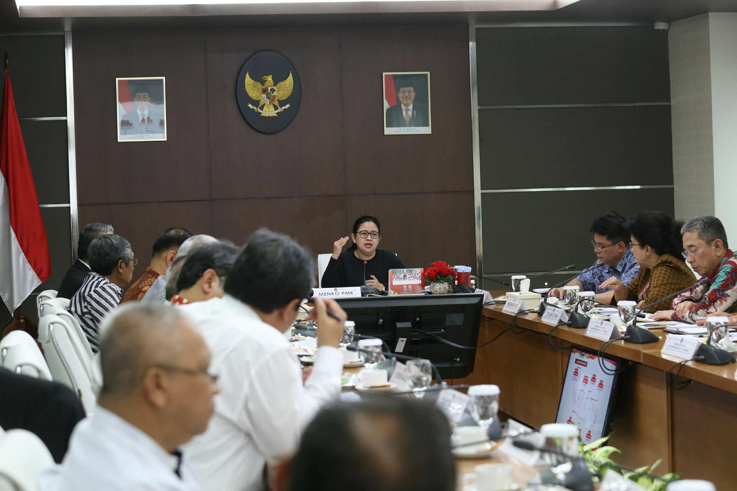 Jakarta (17/01) --- Menko PMK, Puan Maharani, siang ini pimpin Rapat Tingkat Menteri (RTM) terkait persiapan pelaksanaan program padat karya tunai di Desa (PKTD) / Cash For Work di Ruang Rapat Menko Lt.1, Gd. Kemenko PMK, Jakarta. Hadir dalam RTM ini Menteri Desa, Pembangunan Daerah Tertinggal dan Transmigrasi (Kemendes PDTT) Eko Putro Sandjojo; Menteri Pekerjaan Umum dan Perumahan Rakyat, Basuki Hadimuljono; Menteri Kesehatan, Nila Farid Moeloek; Menteri Pertanian, Andi Amran Sulaiman; Sekretaris Eksekutif Tim Nasional Percepatan Penanggulangan Kemiskinan (TNP2K), Bambang Widianto; Perwakilan Kemenko Perekonomian; Kementerian Dalam Negeri; Sekretariat Kabinet; Kantor Staf Presiden; Kementerian Tenaga Kerja; Kementerian Perhubungan; Kementerian Pertanian; Kementerian PUPERA; Kementerian Pariwisata;Kementerian Kelautan dan Perikanan serta beberapa perwakilan K/L lainnya.