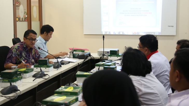 Jakarta (05/04)--- Kementerian Koordinator bidang Pembangunan Manusia dan Kebudayaan (Kemenko PMK) melalui Keasdepan bidang Kepemudaan menggelar Rakornis Pencegahan Bahaya Narkoba di Kalangan Pemuda. Rakornis dibuka dan dipimpin oleh Asdep Kepemudaan Kemenko PMK, Alfredo Sani Fenat, di ruang rapat lt.4, Kemenko PMK.