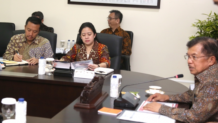 Jakarta (07/03)---Menteri Koordinator bidang Pembangunan Manusia dan Kebudayaan (Menko PMK) Puan Maharani, hari ini beserta Menteri Pemuda dan Olahraga, Imam Nachrowi, menghadap Wakil Presiden, Jusuf Kalla, guna melaporkan perkembangan terkini persiapan Asian Games 2018. Pertemuan dilaksanakan di Kantor Wakil Presiden, Jalan Veteran Nomor 14, Jakarta Pusat.