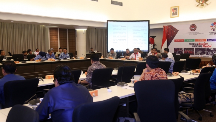 Jakarta (02/05) -- Plt. Deputi Bidang Koordinasi Kebudayaan Kemenko PMK, I Nyoman Shuida, siang tadi memimpin Rapat Koordinasi Asian Para Games XVIII Tahun 2018, bersama Sekretaris Kementerian Pemuda dan Olahraga, Gatot S Dewabroto dan Deputi Bidang Pembangunan , Manusia, Masyaralat, dan Kebudayaan Bappenas, Subandi, di ruang rapat utama lt. 7, Kemenko PMK, Jakarta.