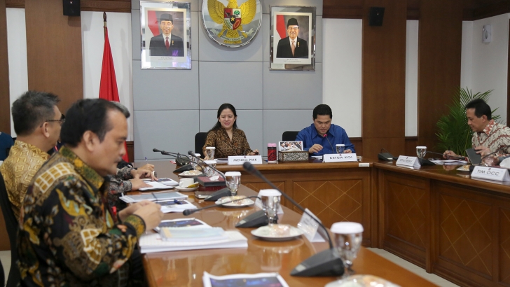 Jakarta (21/02) – Menteri Koordinator Bidang Pembangunan Manusia dan Kebudayaan (Menko PMK) Puan Maharani menerima audiensi Ketua Komite Olimpiade Indonesia (KOI), Erick Thohir, serta Kepala Badan Ekonomi Kreatif (Bekraf), Triawan Munaf, dan tim lainnya di ruang rapat Menko PMK, Jakarta Pusat (21/2) terkait Asian Games 2018. Turut mendampingi pada audiensi tersebut PLT Deputi bidang Koordinasi Kebudayaan Kemenko PMK, Nyoman Shuida, Staf Ahli Menko PMK dan Staf Khusus Menko PMK, Dolfie O.F.P.