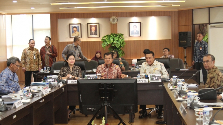 Jakarta (15/03)--- Menteri koordinator Bidang Pembangunan Manusia dan Kebudayaan (Menko PMK), Puan Maharani hadir dalam rapat terbatas (ratas) persiapan penyelenggaraan Asian Games ke-18 tahun 2018 yang dipimpin oleh Wakil Presiden Republik Indonesia (RI) Jusuf Kalla di kantor Kementerian Pemuda dan Olahraga (Kemenpora),Jakarta.