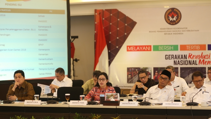 Jakarta, 20/02 – Pelaksanaan Asian Games 2018 sudah di depan mata. Menurut Menteri Koordinator Bidang Pembangunan Manusia dan Kebudayaan (Menko PMK), Puan Maharani, dalam Rapat Koordinasi (Rakor) Tingkat Menteri terkait Progress Penyelenggaraan Asian Games XVIII Tahun 2018 di Ruang Rapat Utama, Kemenko PMK, Jakarta, penyelenggaraan Asian Games 2018 tinggal 17 bulan lagi. “Diperlukan berbagai persiapan agar pelaksanaan Asian Games 2018 mencapai Sukses Persiapan, Sukses Penyelenggaraan dan Sukses Prestasi,” ujarnya.