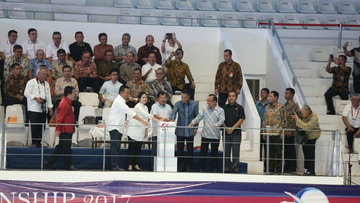 Peresmian ini dibuka dengan peninjauan panel dan market data pembangunan istora gelora bung karno oleh Presiden beserta beberapa Menteri Kabinet Kerja yang turut mendampingi. Rombongan pun