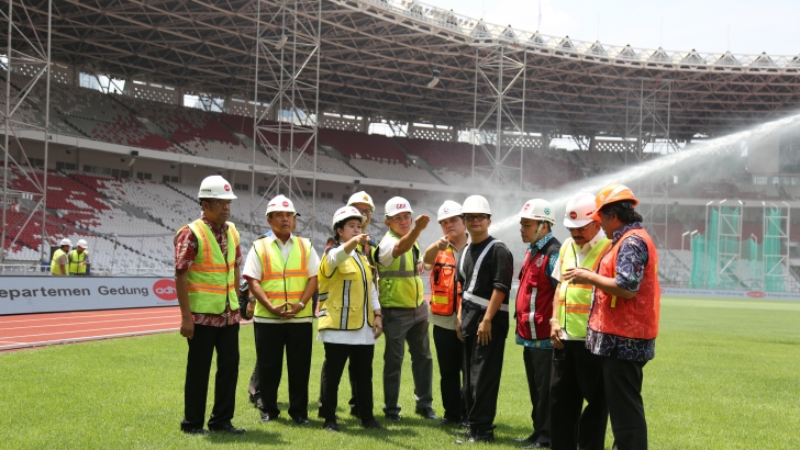 Jakarta(20/10)--Gelaran Asian Games 2018 kurang dari 10 bulan lagi. Guna memastikan kesiapan infrastruktur utama, Menko PMK, Puan Maharani, pagi ini mengecek langsung beberapa fasilitas Asian Games 2018 di komplek Gelora Bung Karno. Turut hadir dalam kesempatan ini Ketua KONI, Mayjend (Purn) Tono Suratman; Dirjen Cipta Karya Kemen PU dan PR, Sri Hartoyo; Ketua KOI/Ketua INASGOC, Erick Tohir; Sesmenpora, Gatot S. Dewabrata; Direktur Pembangunan dan Pengembangan Usaha PPK GBK, dan Gatot Tetuko. Turut pula mendampingi Menko PMK Plt.