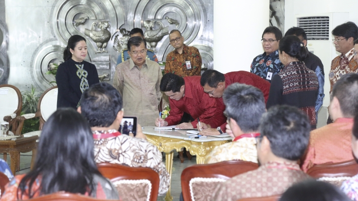 Jakarta (25/10) --- Enam perusahaan telah berpartisipasi dalam kategori sponsor prestige untuk Asian Games. Penandatangan kerjasama antara enam perusahaan itu dengan INASGOC disaksikan Wapres Jusuf Kalla dan Menko PMK Puan Maharani.