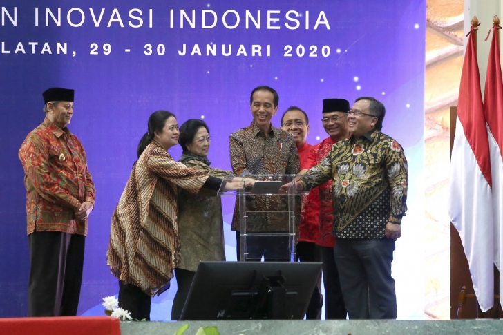 Tangerang Selatan (30/1) -- Indonesia masih memiliki masalah di sektor ekonomi. Daya saing produksi nasional berbasis riset dan inovasi masih belum optimal. Hal tersebut disampaikan oleh Presiden Republik Indonesia Joko Widodo dalam pembukaan Rapat Koordinasi Nasional (Rakornas) Kementerian Riset dan Teknologi/Badan Riset dan Inovasi Nasional (Kemenristek/BRIN) tahun 2020 di Gedung Graha Widya Bhakti, Puspiptek, Tangerang Selatan, Banten, Kamis (30/1).