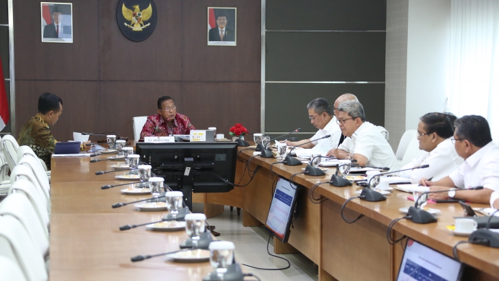 Jakarta (7/10) -- Plt Menko PMK, Darmin Nasution melakukan rapat internal bersama Pejabat Eselon I Kemenko PMK membahas perkembangan program bantuan sosial dan juga rencana penyelenggaraan Pekan Olahraga Nasional (PON) dan Pekan Paralimpik Nasional (Papernas) 2020.