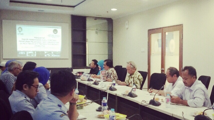 Jakarta (25/04)--- Dua tahun sudah Undang-undang No.8/2014 tentang Penyandang Disabilitas disahkan. Namun nyatanya, belum semua pemegang kepentingan dan semua sektor pemerintahan memahami substansi dari Undang-undang itu. Maka kemudian dibutuhkan upaya untuk memudahkan pemahaman semua pihak dalam melaksanakan penghormatan, perlindungan dan pemenuhan hak-hak penyandang disabilitas sebagaimana diamanahkan dalam UU No.8/2016, di samping memang penyusunan peraturan pelaksana, perencanaan dan penganggaran untuk mengakomodasi kebutuhan implementasi UU No.