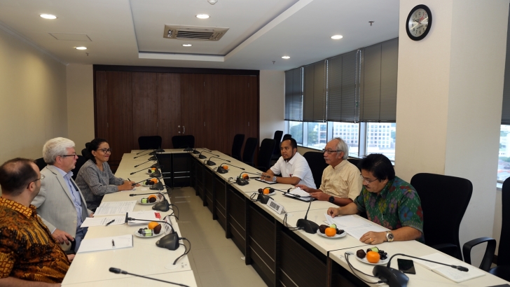 Jakarta (28/04) -- Deputi Bidang Koordinasi Penanggulangan Kemiskinan dan Perlindungan Sosial, Tb A Choesni menerima kunjungan Michael Schmidt dari Kementerian Tenaga Kerja dan Perlindungan Sosial Republik Federal Jerman (Bundesministerium für Arbeit und Soziales) yang ditemani Sergio Grassi Country Director Friedrich Ebert Stiftung (FES) Indonesia.