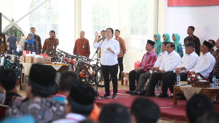 Cirebon, (13/04) -- Menteri Koordinator Bidang Pembangunan Manusia dan Kebudayaan (Menko PMK) Puan Maharani hari ini mendampingi Kunjungan Kerja (Kunker) Presiden RI Joko Widodo di Cirebon, Jawa Barat.