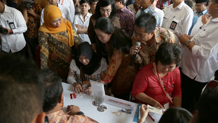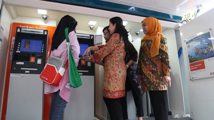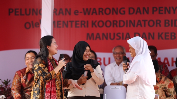 Jakarta (17/11) -- Usai kegiatan Penyaluran Bantuan Sosial Non Tunai Program Keluarga Harapan (PKH), Menko PMK Puan Maharani didampingi oleh Menteri Sosial Khofifah Indar Parawansa menyaksikan cara pencairan Bantuan Sosial Non Tunai PKH oleh para penerima manfaat.