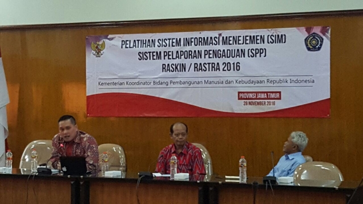 Malang (30/11)--- Keasdepan bidang Koordinasi Kompensasi Sosial pada Kedeputian bidang Koordinasi Penanggulangan Kemiskinan dan Perlindungan Sosial Kemenko PMK, pagi ini melakukan sosialisasi sekaligus pemaparan mengenai rencana perluasan Pemanfaatan Sistem Informasi Manajemen (SIM) dan Sistem Penanganan Pengaduan (SPP) Program Raskin/Rastra dan Bantuan Pangan di Kampus Universitas Muhammadiyah Malang (UMM).