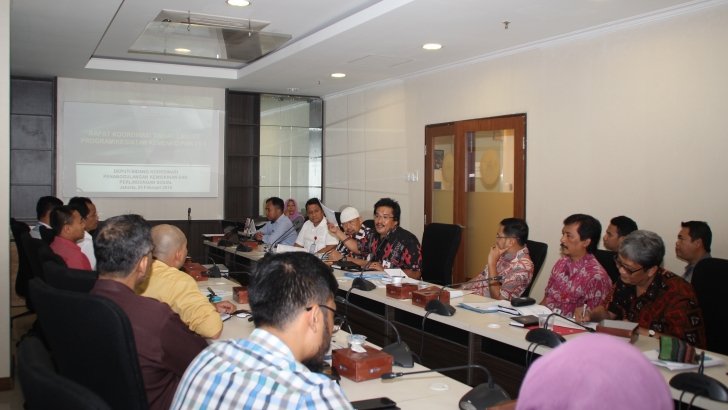 Jakarta, 11 Februari, - Plt. Deputi Menko PMK Bidang Koordinasi Penanggulangan Kemiskinan dan Perlindungan Sosial Dr. Tubagus Rachmat Sentika (kanan), yang juga Deputi Menko PMK Bidang Koordinasi Peningkatan Kesehatan memimpin Rapat Koordinasi (Rakor) dan Sinkronisasi Program Penanggulangan Kemiskinan dengan kementerian/lembaga tahun anggaran 2016. Rakor tersebut berlangsung Kamis, 11 Februari 2016 di ruang rapat lantai 3, Kemenko PMK, Jl. Medan Merdeka Barat No.3, Jakarta.