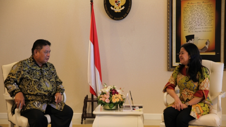 Jakarta, (18/2) - Menteri Koordinator Bidang Pembangunan Manusia dan Kebudayaan (Menko PMK) Puan Maharani menerima audiensi Direktur Utama PT. Taspen Persero, Iqbal Latanro yang didampingi beberapa orang direksi PT. Taspen di ruang kerja Menko PMK, di Jakarta. Turut mendampingi Menko PMK, Staf Khusus Menko PMK, Dolfie, OFP. (humas)
