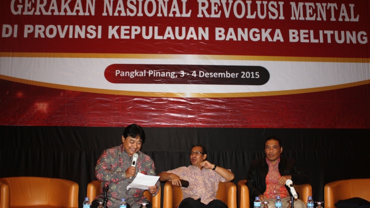 Pangkalpinang, 03 desember 2015 -- Plt Deputi Bidang Koordinasi Penanggulangan Kemiskinan dan Perlindungan Sosial Kemeterian Koordinator Bidang Pembangunan Manusia (kemenko PMK) Tb Rachmat Sentika memberikan sambutan saat membuka Rapat Koordinasi dan Sosialisasi Gerakanan Nasional Revolusi Mental (GNRM) yang berlangsung di Hotel Novotel, Pangkalpinang Provinsi Bangka Belitung, Kamis malam, (03/12/2015). (yn/humas)