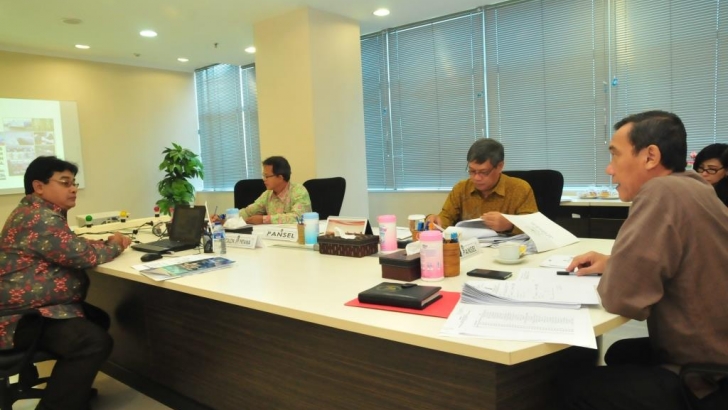 Jakarta, 18 Nopember, - Sebagai tindak lanjut Seleksi Pengisian Jabatan Pimpinan Tinggi (JPT) Pratama (jabatan Struktural Eselon IIa) di Kemenko PMK, pada hari ini, Rabu, 18/11/2015 dari pukul 08.00 sampai dengan malam dilaksanakan seleksi tahap berikutnya yaitu tahap wawancara. Ketua Panitia Seleksi Pengisian JPT Pratama yang juga Sesmenko PMK, Sugihartatmo (kanan) sedang mewancarai seorang pelamar(kiri). Dalam seleksi wawancara ini, pelamarnya berjumlah 45 orang pelamar untuk mengisian 8 (delapan) jabatan Asisten Deputi pada 6 (enam) Deputi .