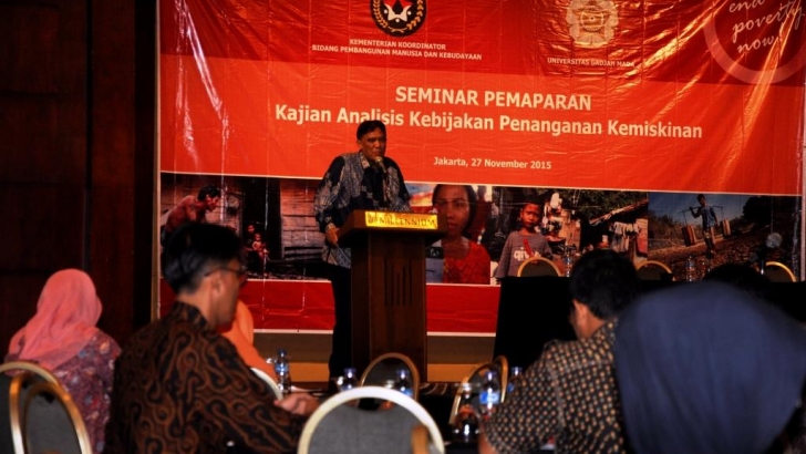 Jakarta, 27 November - Plt. Deputi Menteri Koordinator Bidang Pembangunan Manusia dan Kebudayaan (Menko PMK) urusan Penanggulangan Kemiskinan dan Perlindungan Sosial Tb. Rahmat Sentika membuka Seminar Pemaparan Kajian Analisis Kebijakan Penanganan Kemiskinan. Dalam kesempatan itu, Rahmat mengatakan, perlu upaya lebih serius dalam penanggulangan kemiskinan di Indonesia, khususnya dalam penyediaan data kemiskinan yang up to date. Ia berharap, seminar yang diselenggarakan ini mampu memberikan masukan kepada pemerintah khususnya dalam penanggulangan kemiskinan yang dilakukan selama ini.