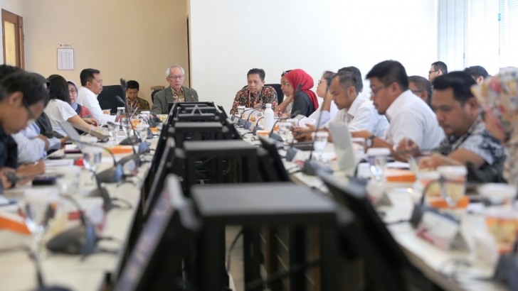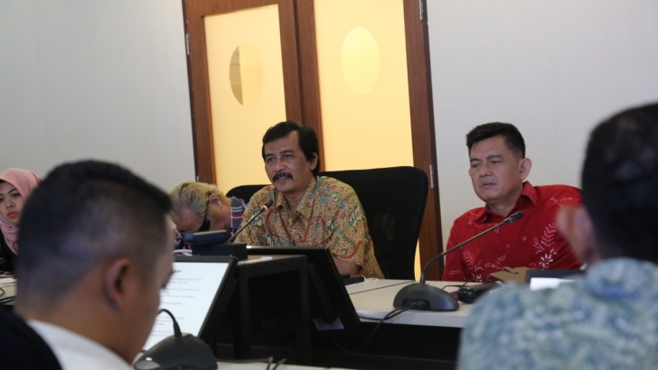 Jakarta (20/06) -- Deputi Bidang Koordinasi Penanggulangan Kemiskinan dan Perlindungan Sosial Kemenko PMK, Tb. Achmad Choesni didamping Asisten Deputi Bidang Kompensasi Sosial Kemenko PMK, Herbin Manihuruk memimpin rapat koordinasi teknis (rakornis) Persiapan Perluasan Bantuan Pangan Non Tunai (BPNT) Tahap II Agustus 2019. Rakornis dilaksanakan di ruang rapat Lt.3 Kemenko PMK, Jakarta, Kamis Siang (20/06).