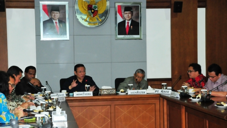 Jakarta, 9 Oktober - Menko Kesra HR. Agung Laksono (ke empat kanan) selaku Ketua Dewan Pembina Yayasan Pembangunan Berkelanjutan Sulawesi Utara (YPBSU) memberikan Sambutan pada Rapat pembina YPBSU, Kamis (9/10/2014) pagi di Kemenko Kesra, Jl. Medan Merdeka Barat No.3, Jakarta. (Foto:Gs).