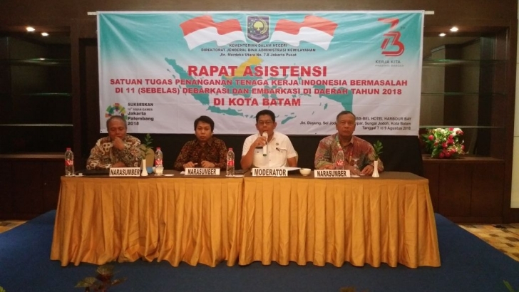 Batam (08/08)- Asdep Pemberdayaan Perempuan, Kemenko PMK, Wagiran, menjadi salah satu Narasumber pada Rapat Asistensi Satgas Penanganan TKI Bermasalah 11 entry point di Batam yang diselenggarakan oleh Ditjen Bina Administrasi Kewilayahan Kemendagri. Rapat diikuti oleh perwakilan dari 11 entry point.