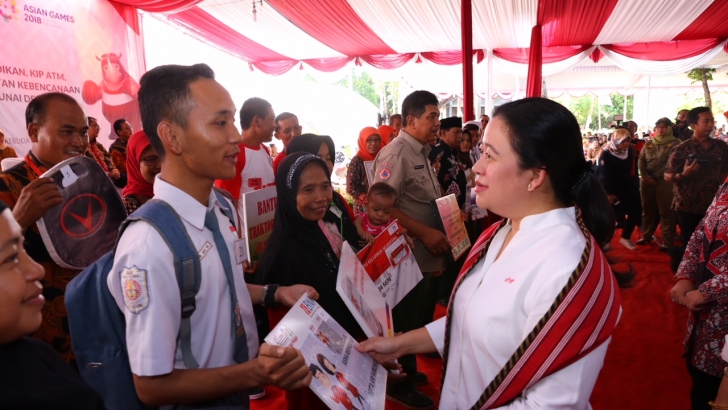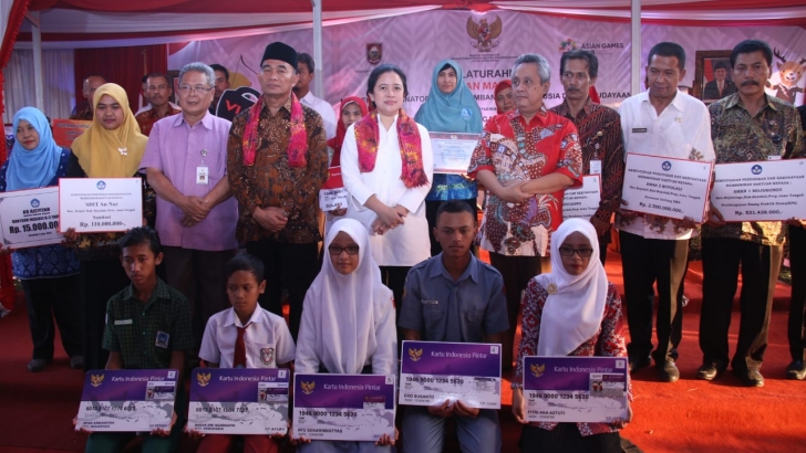 Boyolali (05/06)— Menteri Koordinator Pembangunan Manusia dan Kebudayaan (Kemenko PMK) Puan Maharani, dalam kunjungan kerjanya hari ini juga menyerahkan berbagai bantuan kepada masyarakat Boyolali. Sebanyak 1350 orang penerima program bantuan dari Pemerintah, mencakup bantuan pendidikan, KIP ATM, SK TPG, PKH, Bantuan Pangan Non Tunai (BPNT), permodalan BUMDes, bantuan pertanian, bantuan perikanan, dan peralatan kebencanaan.
