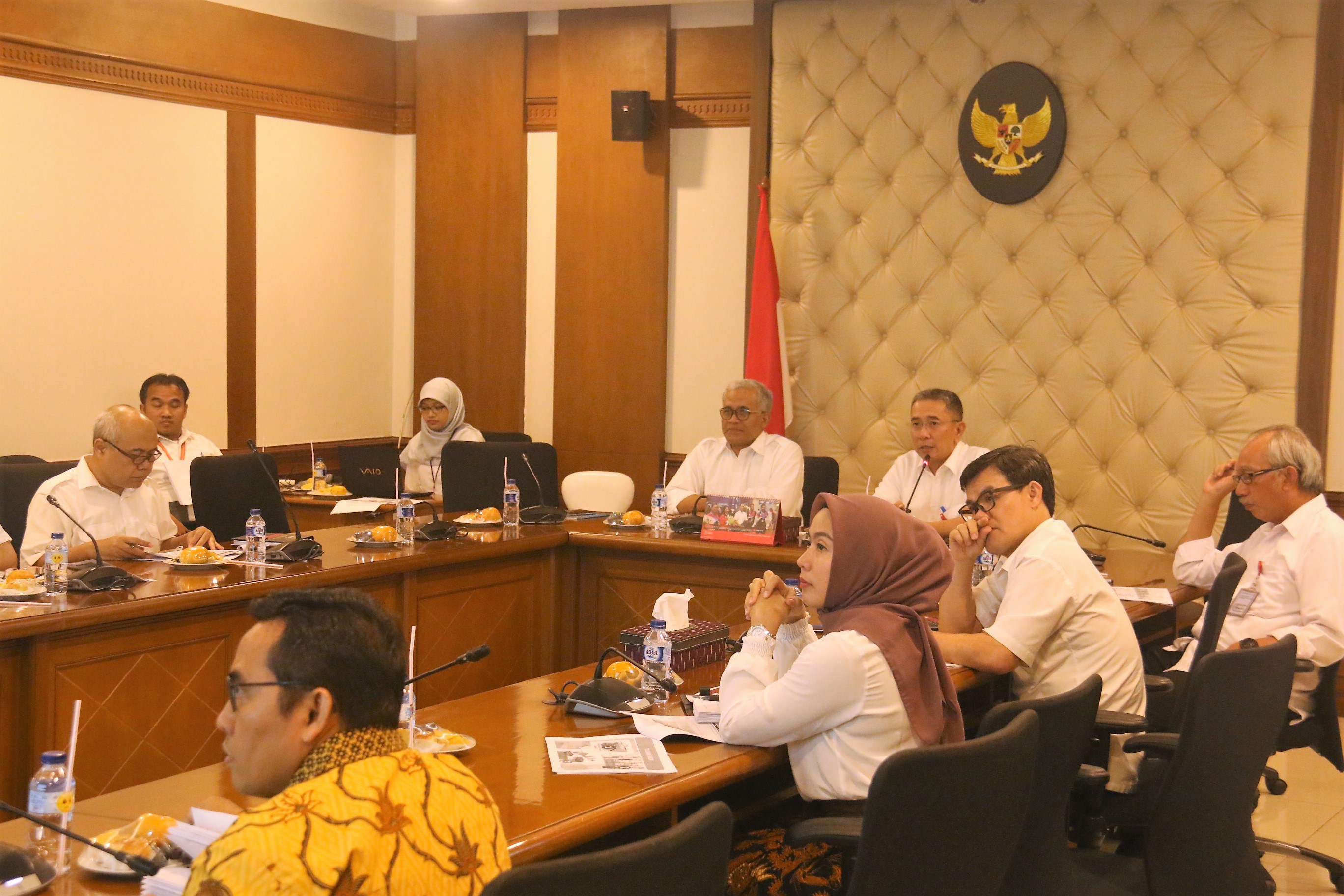 Jakarta (10/11)--- Sekretaris Kementerian Koordinator Bidang Pembangunan Manusia dan Kebudayaan (Seskemenko PMK), Y.B Satya Sananugraha, siang hari ini memimpin rapat internal di lingkup Kemenko PMK guna mematangkan persiapan pelaksanaan High Level Meeting People to People Exchange Mechanism (HLM PEM) RI-RRT Ke-3 tahun 2017. Adapun agenda rapat hari ini adalah untuk membahas pending matters, pembagian tugas Internal di lingkup Kemenko PMK, serta daftar kebutuhan dan personel yang diperlukan dalam pelaksanaan HLM PEM ke-3 nanti. “Pelaksanaan High Level Meeting People to People Exchange Mechanism tahun 2017 yang semakin dekat tentunya harus semakin dimatangkan lagi persiapannya. Kerja sama terutama di bagian Internal Kemenko PMK sebagai penyelenggara kegiatan tentunya sangat diperlukan. Masing-masing PIC (Person in Charge--red) diharapkan dapat mengetahui peran dan tugasnya masing-masing," jelas Seskemenko PMK.