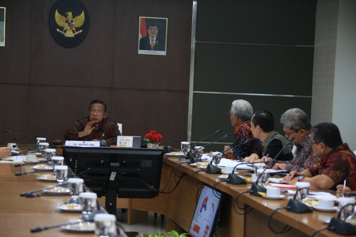 Jakarta (9/10) -- Plt. Menteri Koordinator Bidang Pembangunan Manusia dan Kebudayaan (Menko PMK), Darmin Nasution memimpin rapat internal dengan Pejabat Eselon I Kemenko PMK. Rapat dilaksanakan di ruang rapat lantai 8 Kemenko PMK, Jakarta, Rabu sore(9/10).