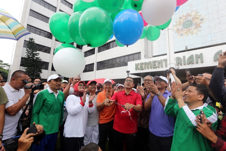 Jakarta (30/09)--- Deputi bidang Koordinasi Pendidikan dan Agama Kememko PMK, Agus Sartono, mewakili Menko PMK. Puan Maharani dan mendampingi Menteri Agama, Lukman Hakim Saifuddin, pada Launching Pekan Olah raga dan Seni Antar Pondok Pesantren Tingkat Nasional (POSPENAS) VII 2016 pagi tadi di Kantor Kementerian Agama.