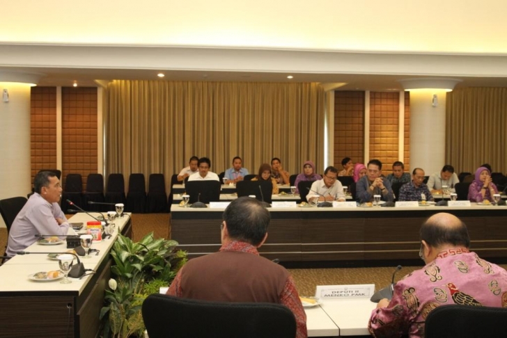 Jakarta, 18 Nopember - Sesmenko PMK Sugihartatmo (kiri) memimpin rapat pimpinan (Rapim) Kemenko PMK terkait implementasi Program Simpanan Keluarga Sejahtera , Program Indonesia Pintar , Program Indonesia Sehat untuk membangun Keluarga Produktif. Rapat dihadiri jajaran pejabat Kemenko PMK mulai dari eselon I hingga eselon III. (PS/Gs)