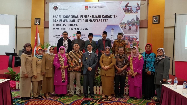 Bukit Tinggi (13/11) --- Asisten Deputi (Asdep) Nilai dan Kreativitas Budaya, Kemenko PMK, Iwan Eka Setiawan, mewakili Plt. Deputi Bidang Koordinasi Kebudayaan, Nyoman Shuida, senin pagi membuka dan memimpin rapat koordinasi pembangunan karakter dan peneguhan jati diri masyarakat berbasis budaya yang diselenggarakan di Bukittinggi, (Sumbar), rakor ini bertempat di Hotel Grand Rocky, Bukittinggi, Sumatera Barat. Diawali dengan tari-tarian nasional sebagai pembuka dari SDN 02 Percontohan Bukit Tinggi dan dilanjutkan paparan-paparan dari para narasumber diantaranya,Irwandi; Wakil Walikota Bukit TInggi, Kuat Prihatin Kasubdit Program, Evaluasi dan Dokumentasi Direktorat Kebudayaan Kemendikbud RI; Sumarni, Sekretaris Dinas Pendidikan dan Kebudayaan Provinsi Sumbar; Andar Indraa Sastra, Pakar Budaya Isi Padang Panjang; Iernida bagus, Kabid Dinas Pendidikan dan Kebudayaan Kab. Bukit Tinggi.
