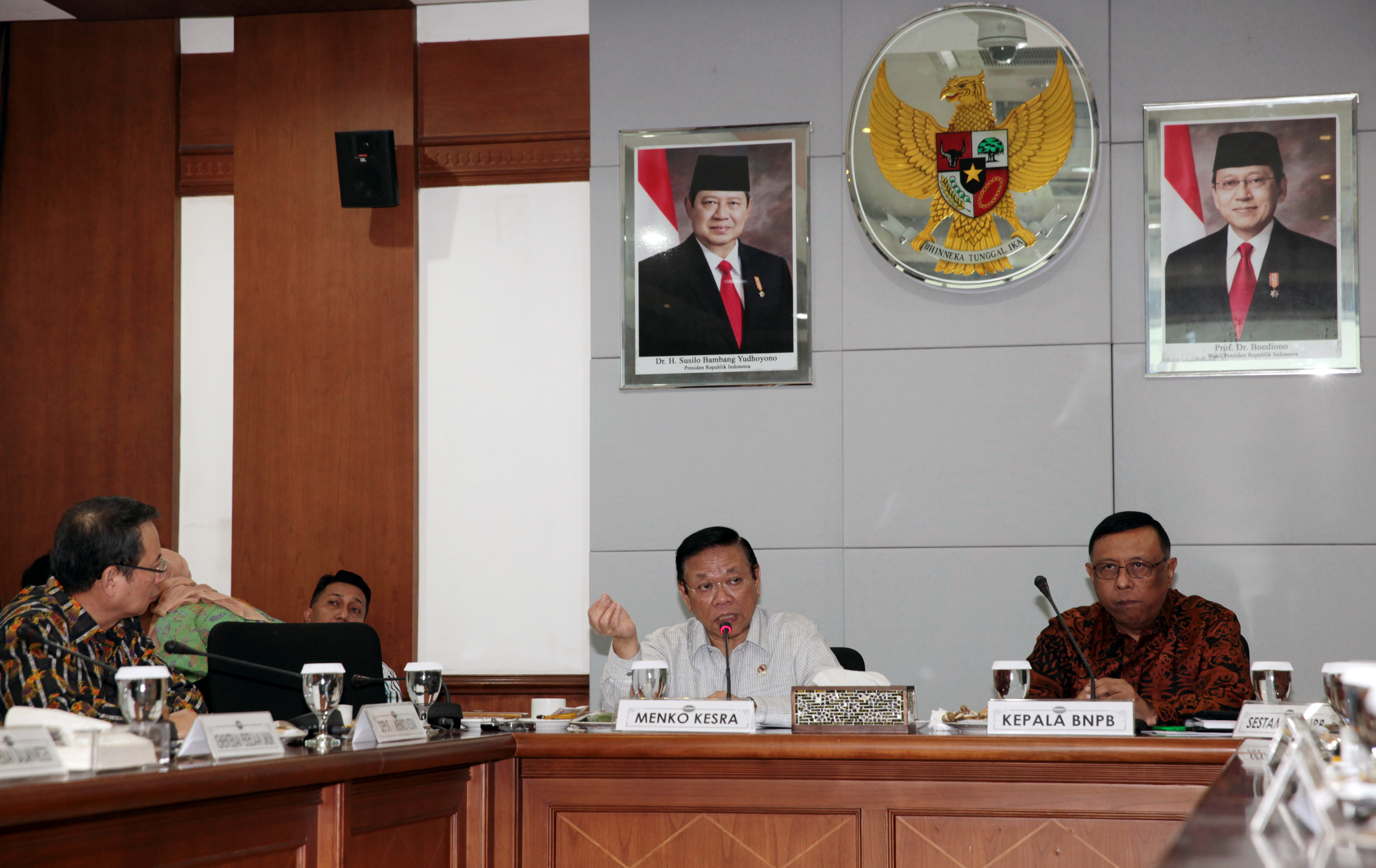 Rakor dihadiri oleh Kepala BNPB Samsul Maarif, Deputi Menko Kesra Bidang Koordinasi Lingkungan Hidup dan Kerawanan Sosial Willem Rampangilei (kiri). (fik)