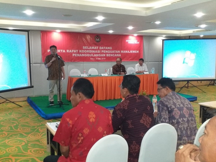 Jakarta (28/05)---Plt. Deputi Bidang Koordinasi Kerawanan Sosial dan Dampak Bencana, Kemenko PMK, Sonny Harry B Harmadi membuka Rapat Koordinasi Penguatan Manajemen Penanggulangan Bencana di Provinsi Bali pada Jumat lalu (24/05). Turut mendampingi Sonny dalam rakor itu antara lain Asdep Penanganan Pascabencana, Kemenko PMK, beserta Kepala Pelaksana BPBD Provinsi Bali. Rakor turut dihadiri oleh seluruh Kepala Pelaksana BPBD se-kab./kota se-Provinsi Bali.