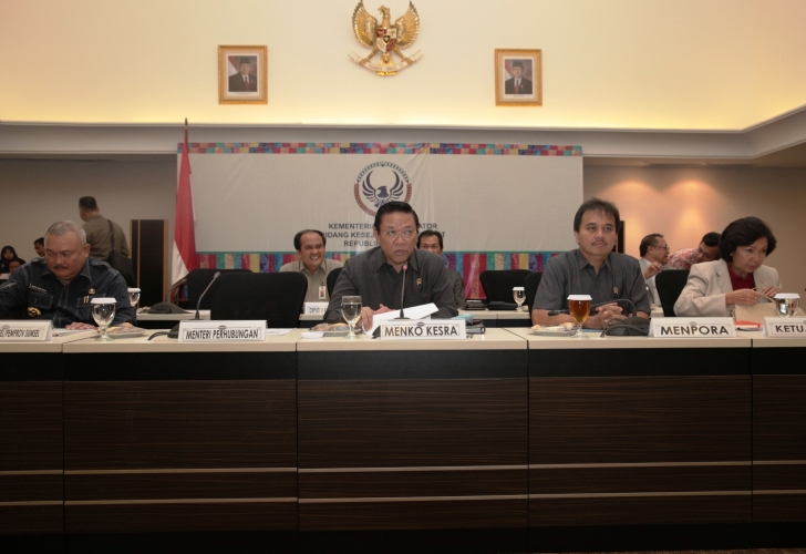 Jakarta, 11 September 2014 - Menteri Koordinator Bidang Kesejahteraan Rakyat H.R. Agung Laksono memimpin rapat koordinasi terkait dengan persiapan penyelenggaraan Asia Games ke-18 di Indonesia pada tahun 2018. Hadir dalam rapat tersebut Menteri Pemuda dan Olahraga, Roy Suryo, Gubernur Sumatera Selatan Alex Nooerdin, dan Ketua Komite Olahraga Indonesia (KOI) Rita Subowo, di Kantor Kemenko Kesra Jakarta, Kamis (11/09). (foto;deni)