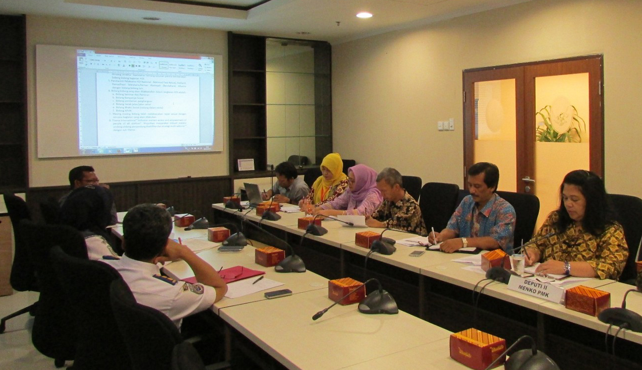 Jakarta 06/10- Asisten Deputi Penanggulangan Kemiskinan, Kemenko PMK, Tini Martini (paling kanan) didampingi Plt. Asdep Pemberdayaan Disabilitas dan Lansia, Ade Rustama (kedua Kanan) memimpin Rapat Persiapan Lanjutan Hari Disabilitas Internasional (HDI) Tahun 2015 di ruang rapat Kemeko PMK, selasa (6/09)