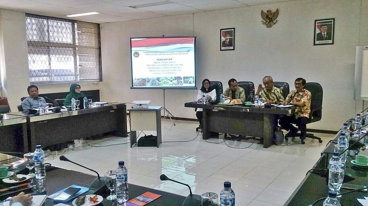 Cibinong, Bogor (27/07)--- Keasdepan bidang Koordinasi Pemberdayaan Penyandang Disabilitas dan Lansia pada Kedeputian bidang Koordinasi Penanggulangan Kemiskinan dan Perlindungan Sosial Kemenko PMK, menggelar rakor tindak lanjut mengenai implementasi pemenuhan hak-hak penyandang disabilitas melalui pabrik/perusahaan disabilitas (disability enterprise) di Cibinong, Kab Bogor, Jawa Barat. Selain rapat, peserta rakor juga berkesempatan mengunjungi model pabrik/perusahaan di Balai Besar Rehabilitasi Vokasional Bina Daksa (BBRVBD) yang ada di Cibinong.